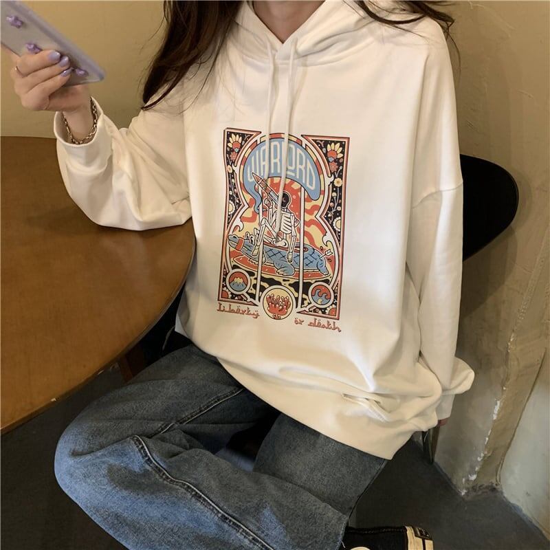 着心地抜群 女性力を高める プリント 3色選択可 スウェット パーカー<ins-2897>