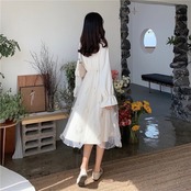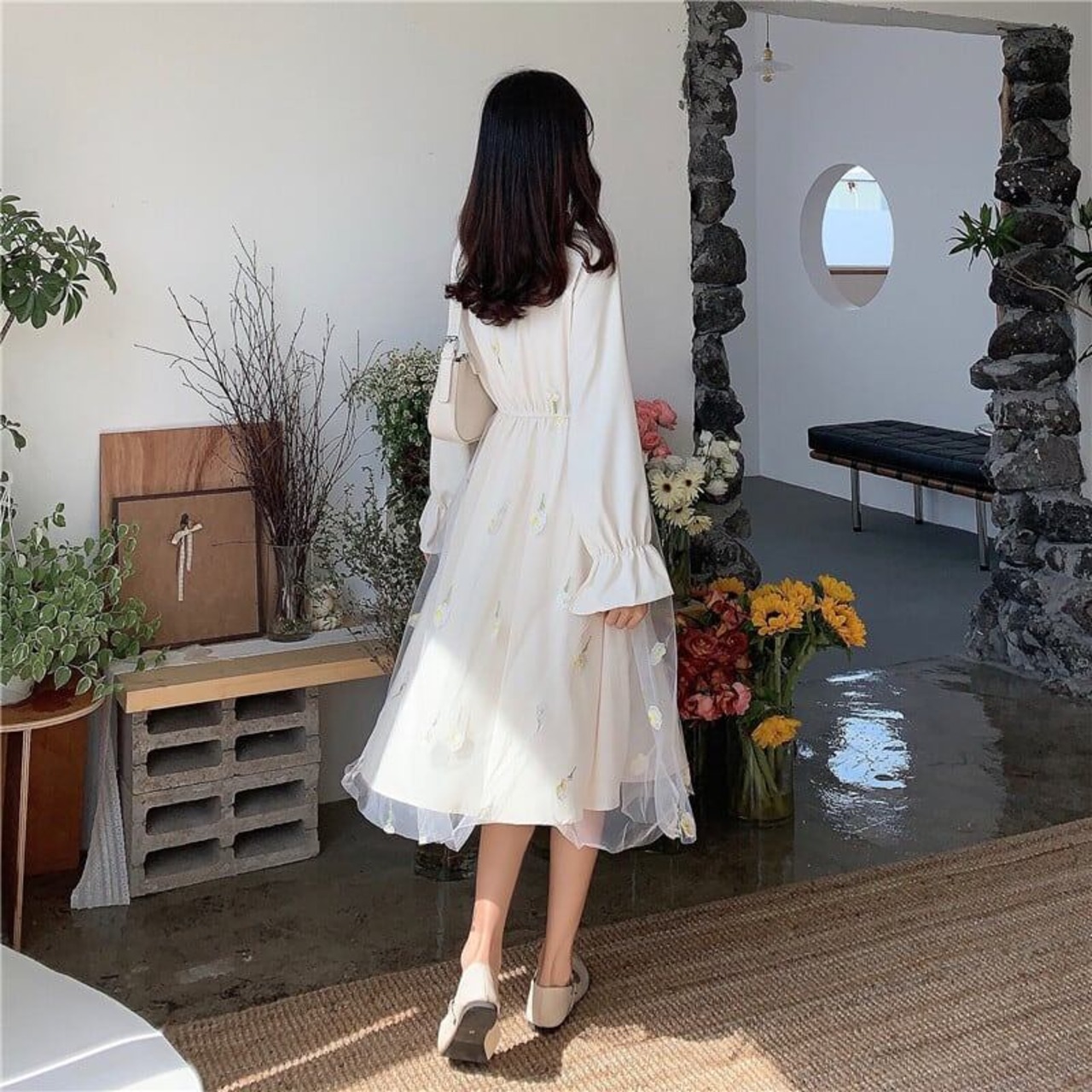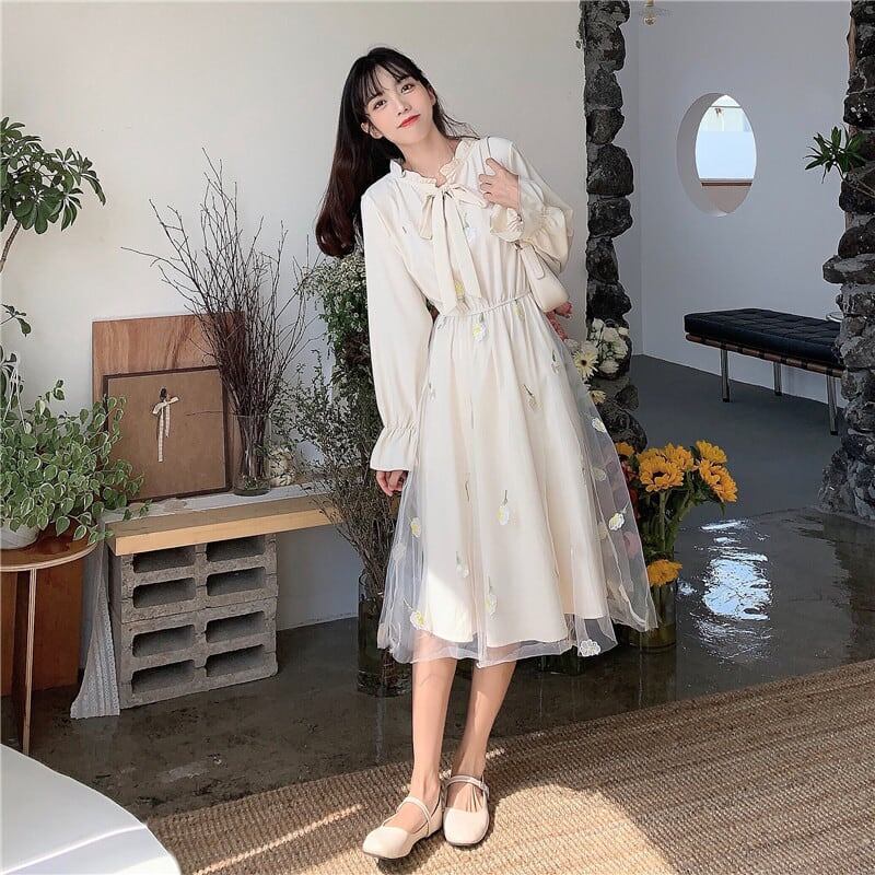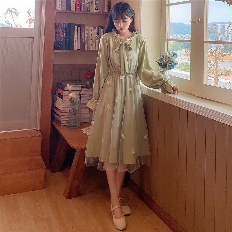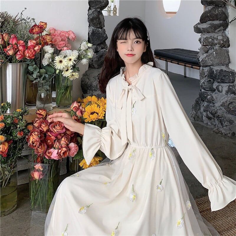 気質溢れる 好感度満載 花柄 切り替え 長袖 ワンピース<ins-2887>
