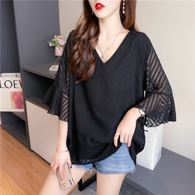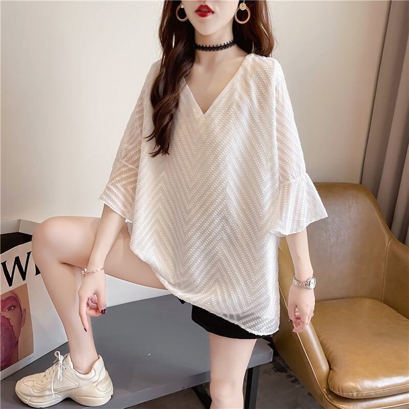 好感度満載 お値段以上 Vネック 無地 シャツ ブラウス トップス<ins-2895>