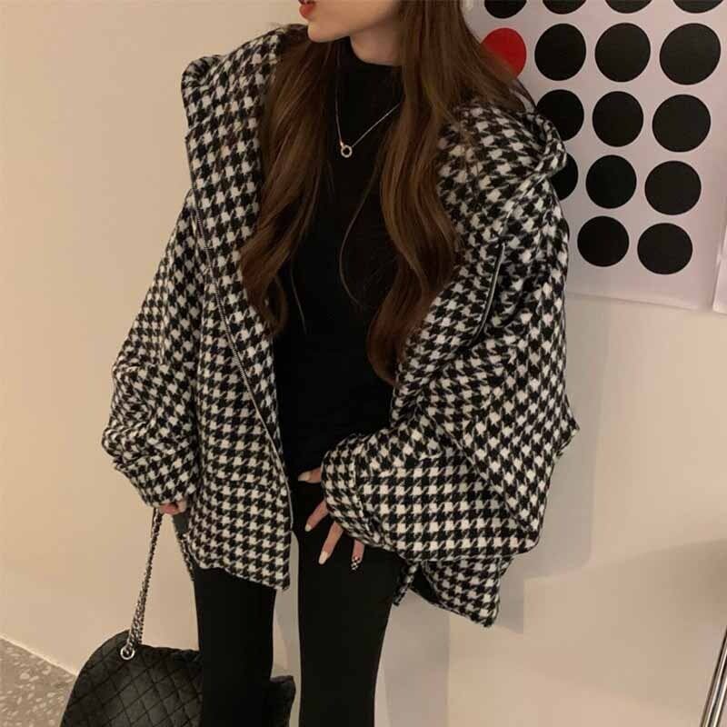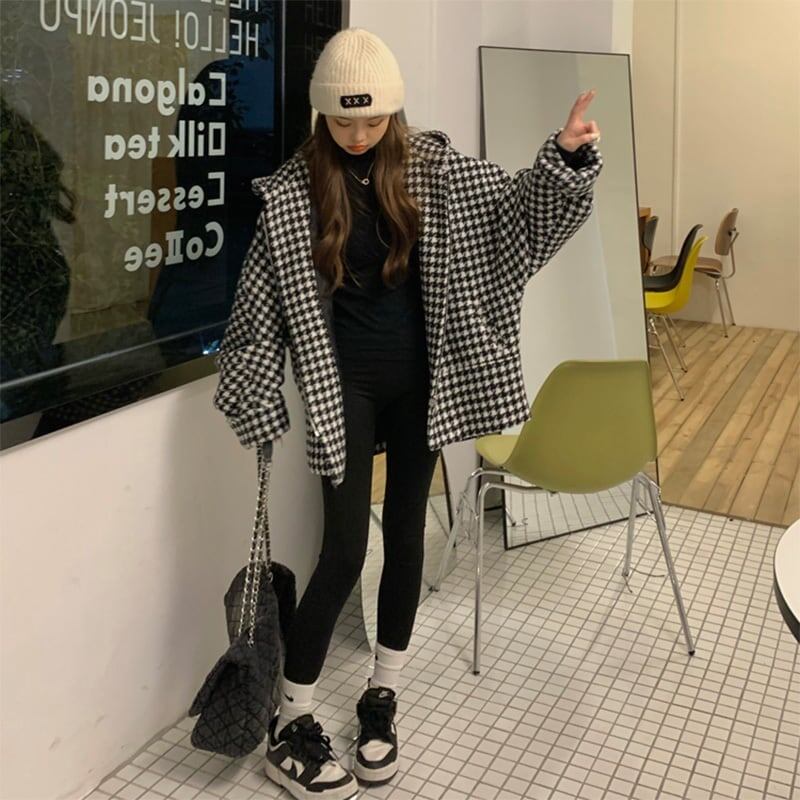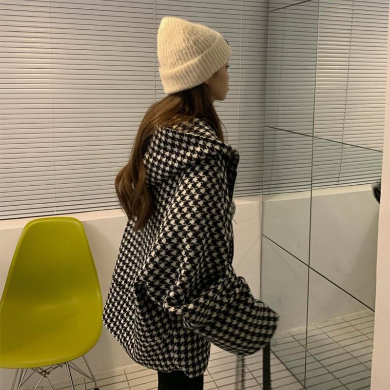 レトロ 個性的なデザイン 千鳥格子 長袖 ジャケット ブルゾン アウター<ins-2868>