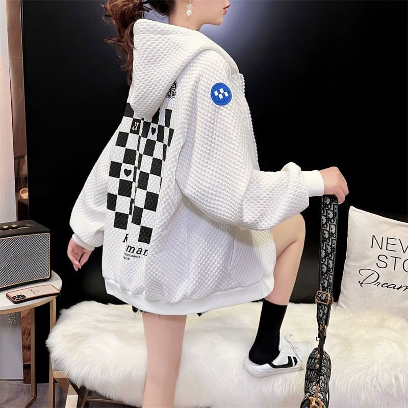 高級感溢れた 女性力を高める チェック柄 長袖 スウェット パーカー<ins-2882>