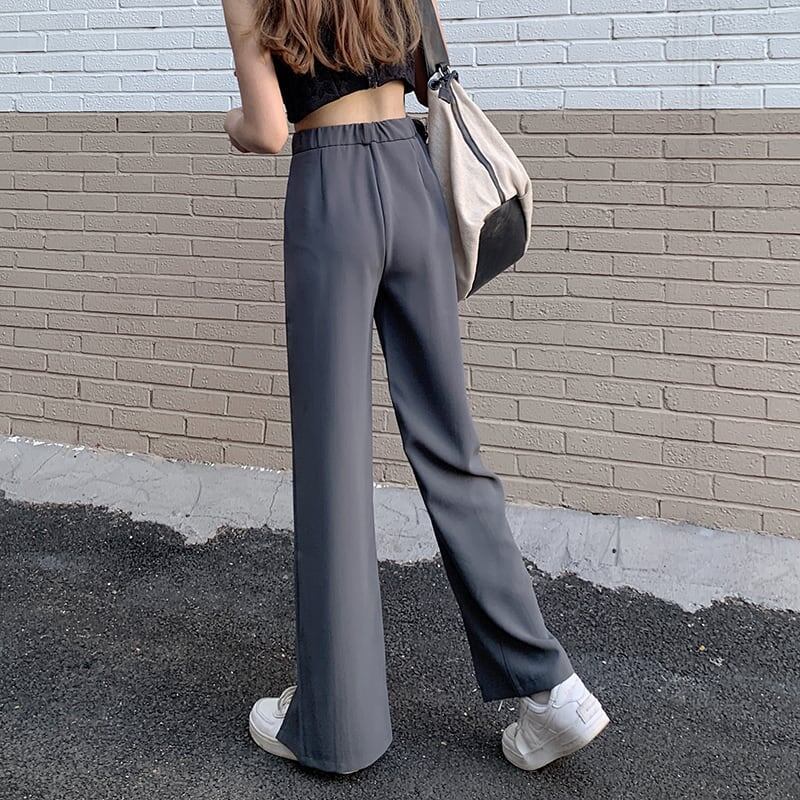 デザイン感 ルーズ ハイウエスト 無地 ワイドパンツ ボトムス<ins-2948>