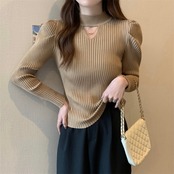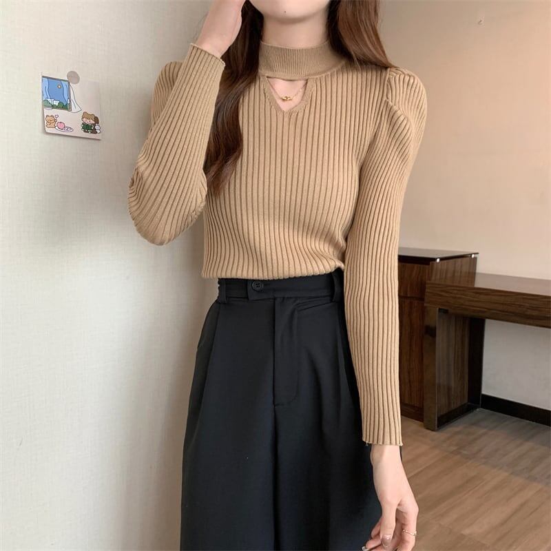 オシャレ度満点 カジュアル 無地 切り替え 長袖 セーター トップス<ins-2840>