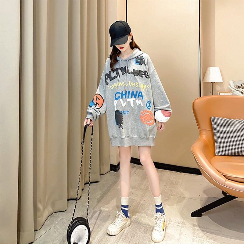 気質溢れる 女性力を高める 3色選択可 プリント 長袖 スウェット パーカー<ins-2844>