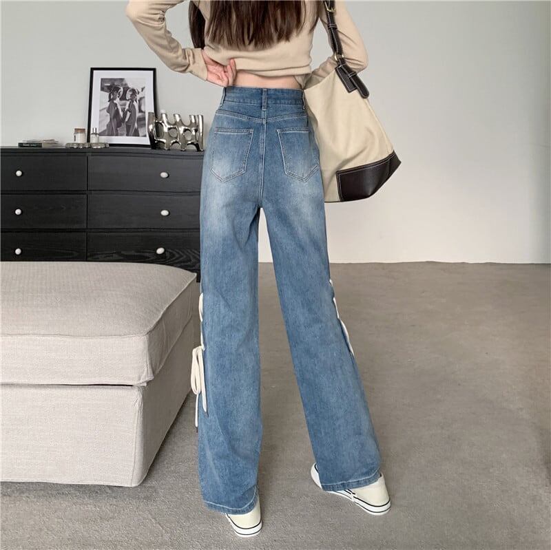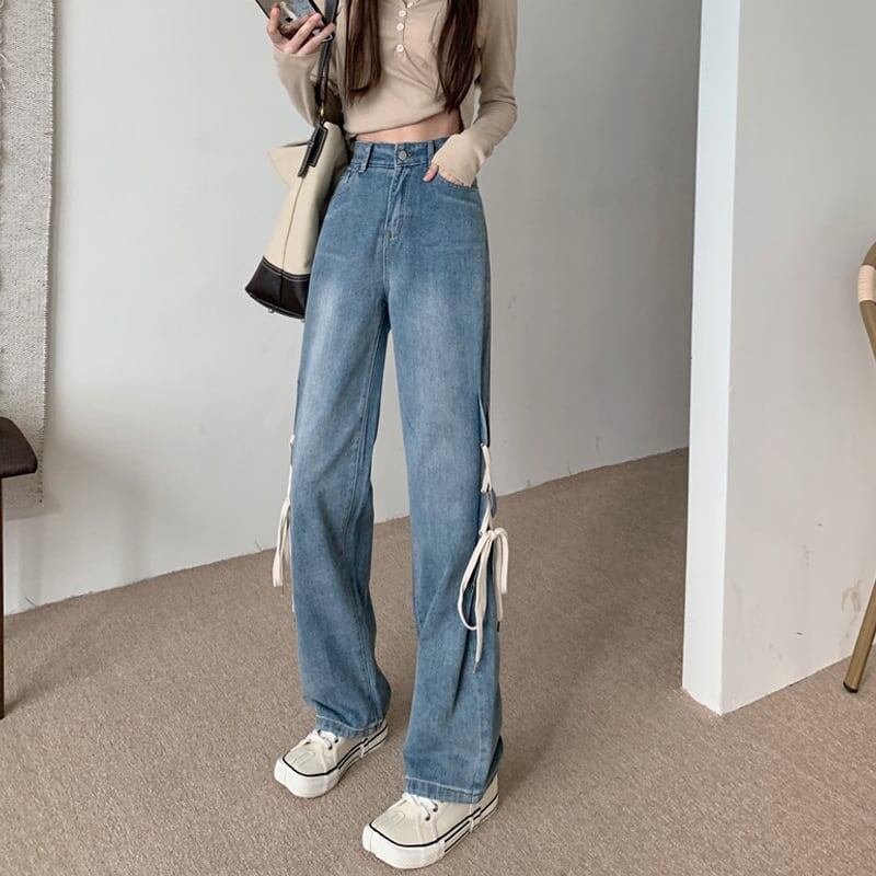 レトロ スタイリッシュ ハイウエスト ジッパー ワイドパンツ<ins-2862>