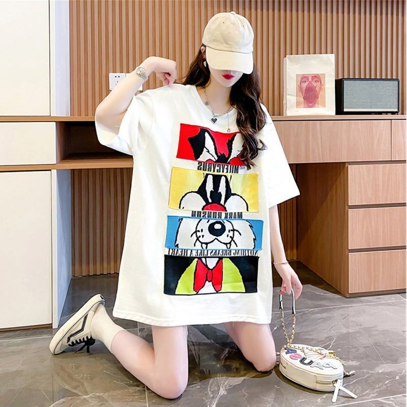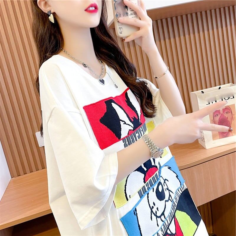清純甘くて女子力UP 一目惚れ ラウンドネック カートゥーンプリント Tシャツ<ins-2817>