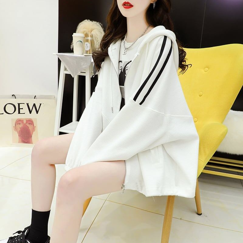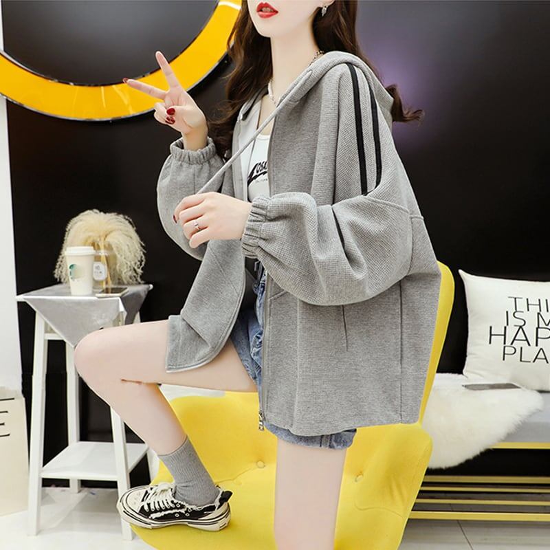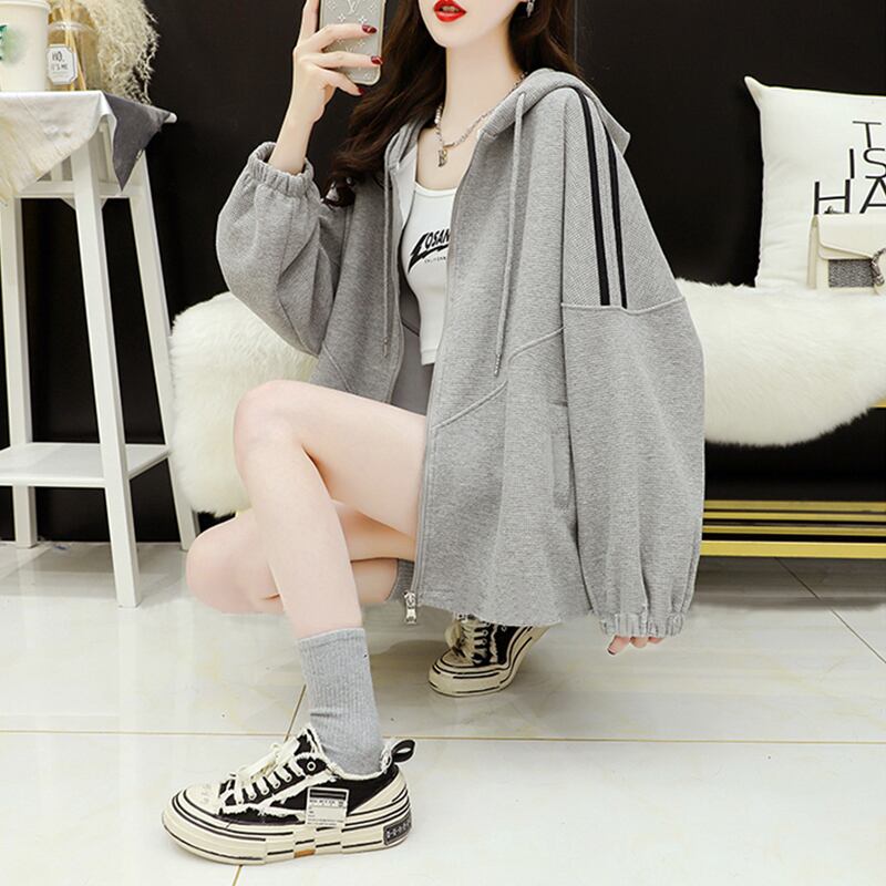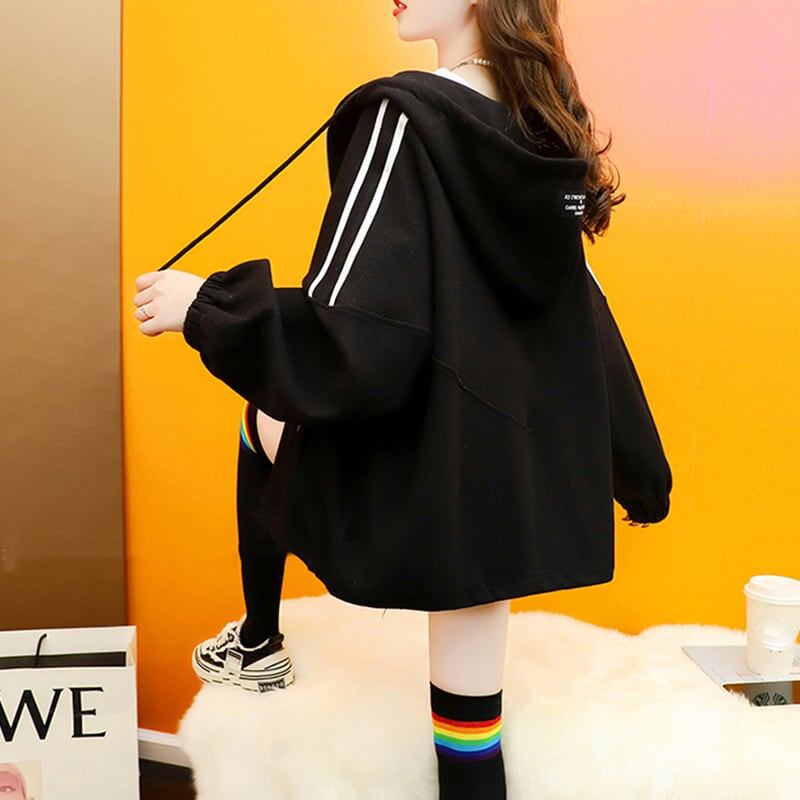 ゆったり感アップ 一目惚れ ストライプ 長袖 切り替え スウェット パーカー<ins-2359>
