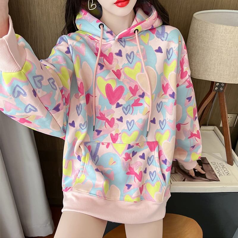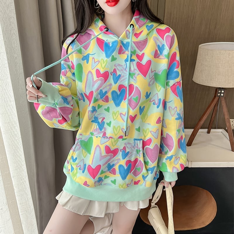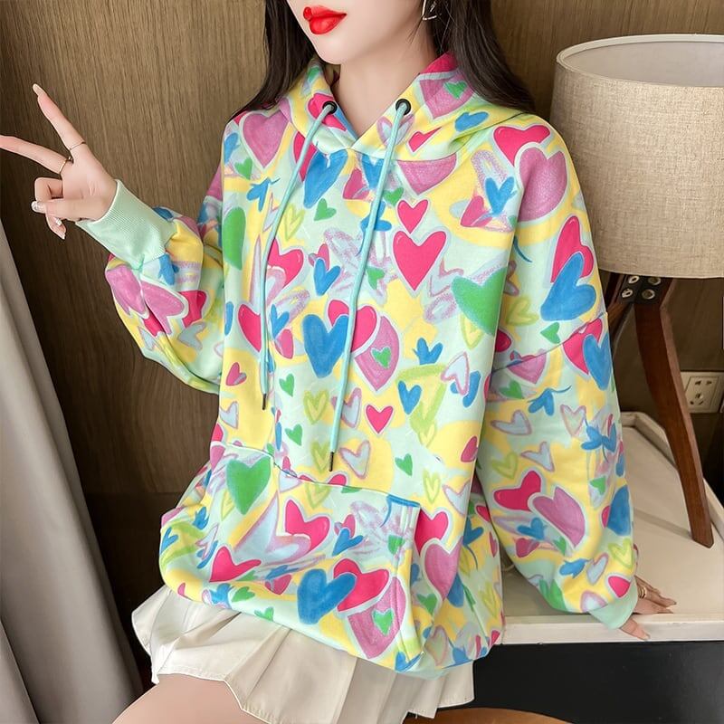 オシャレ度満点 一目惚れ プリント 長袖 スウェット パーカー トップス<ins-2351>