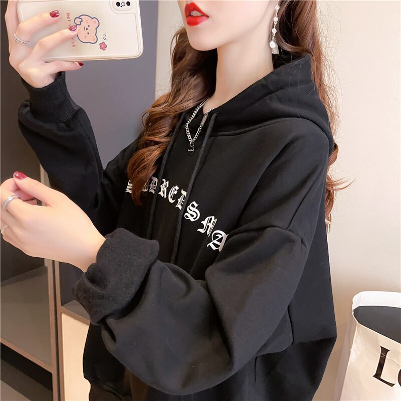 スタイリッシュ 一目惚れ プリント 長袖 切り替え スウェット パーカー トップス<ins-2787>