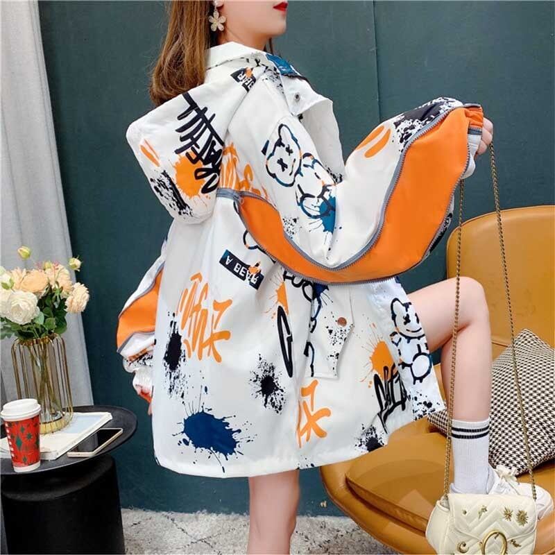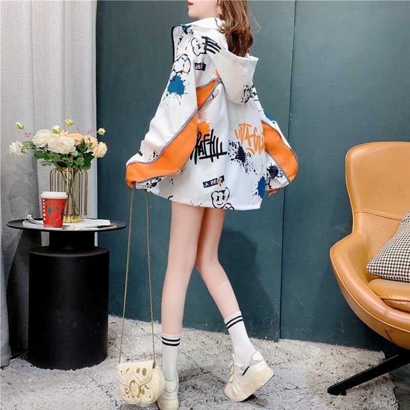 デザイン感 チャーミング プリント ジッパー 長袖 ジャケット ブルゾン<ins-2786>