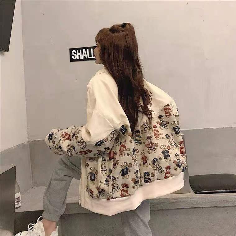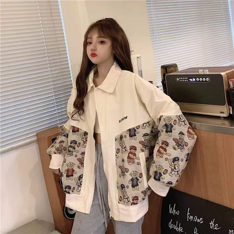 清純甘くて女子力UP 気質溢れる カートゥーンプリント ジッパー 長袖 ジャケット ブルゾン<ins-2466>