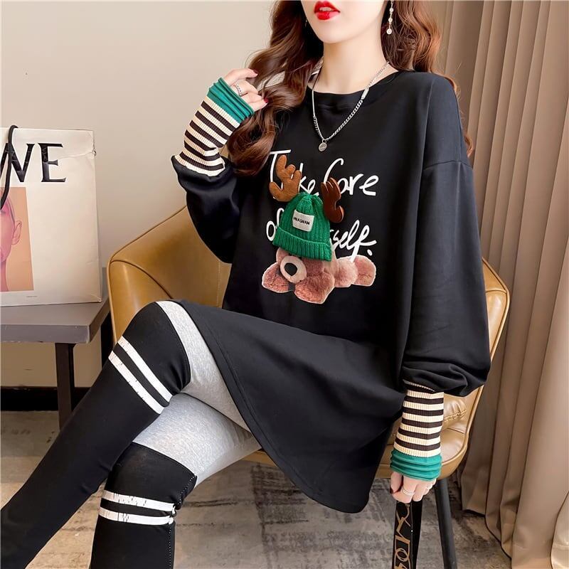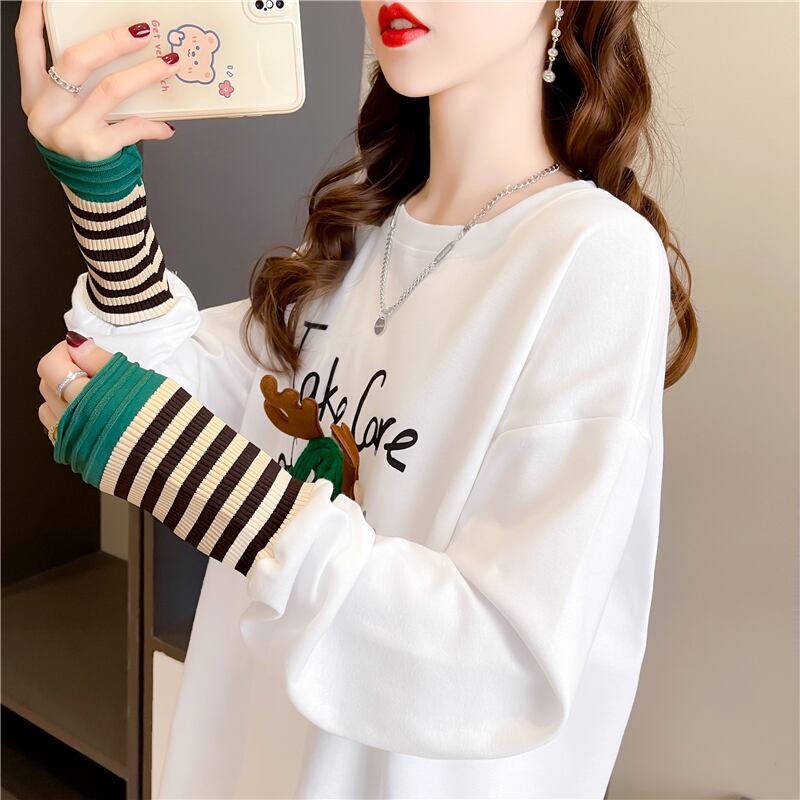 着心地抜群 好感度満載 ラウンドネック カートゥーンプリント シャツ ブラウス<ins-2664>