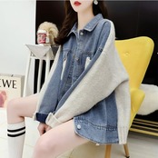デザイン感 チャーミング POLOネック 切り替え 長袖 カーディガン アウター<ins-2773>