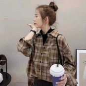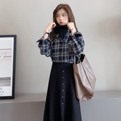 スタイリッシュ 着心地抜群 POLOネック チェック柄 長袖 シャツ ブラウス<ins-2244>