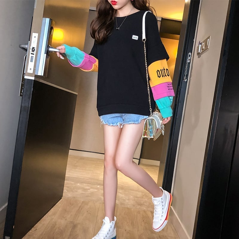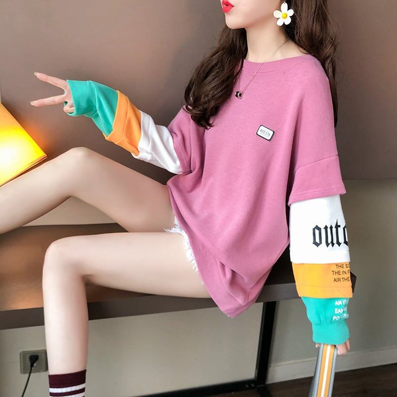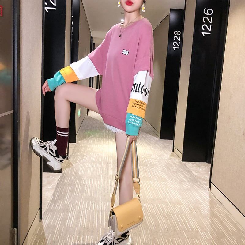 デザイン感 デイリー ラウンドネック アルファベット 長袖 3色選択可 スウェット パーカー<ins-2242>