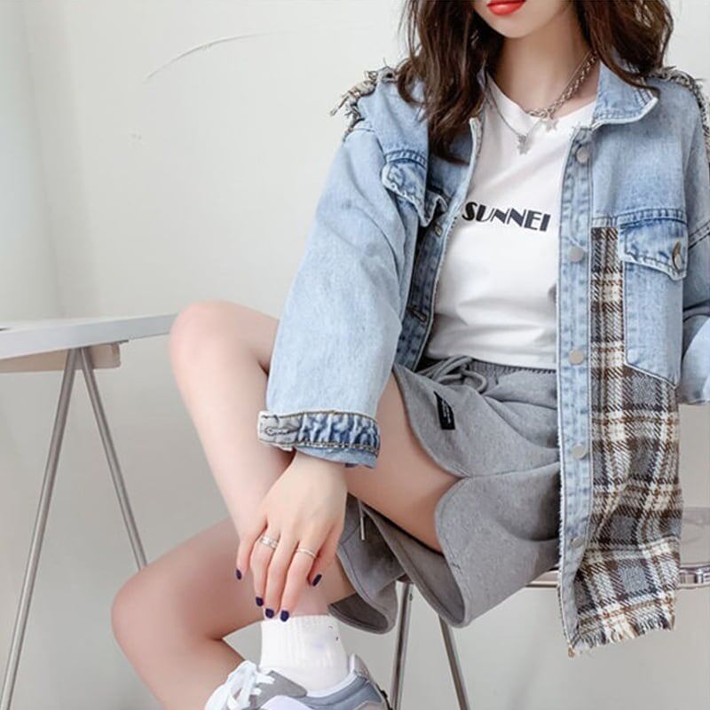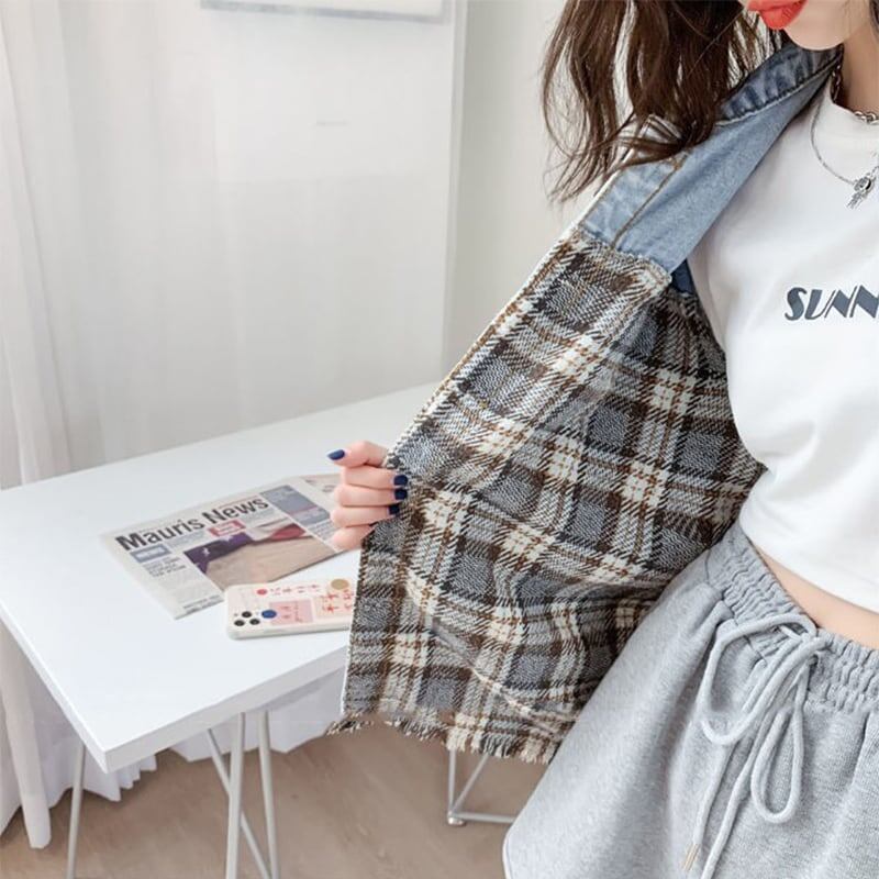 新作 オシャレ度満点 長袖 切り替え チェック柄 ジャケット アウター<ins-2236>