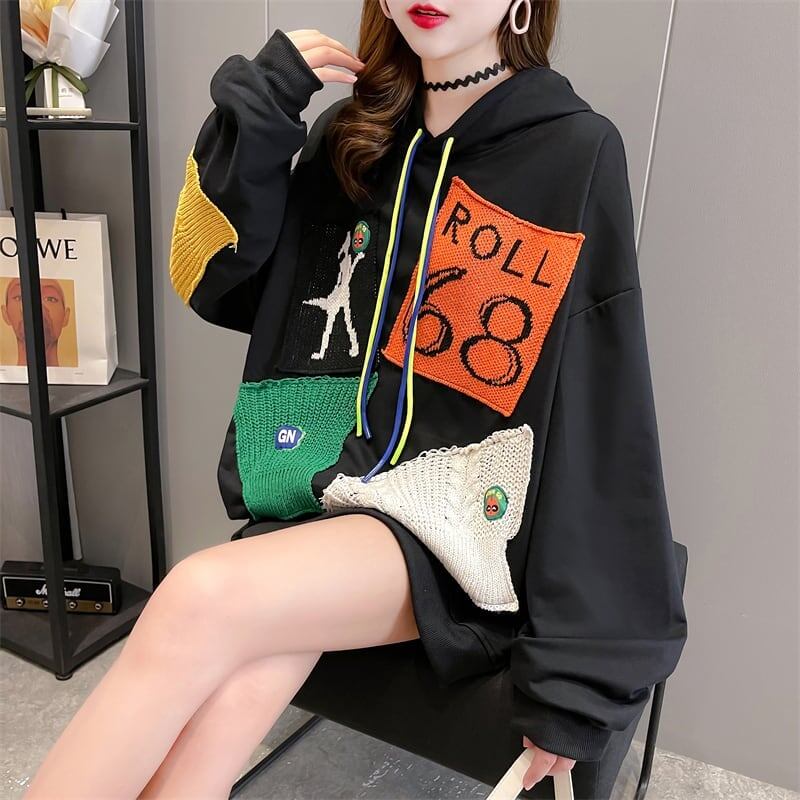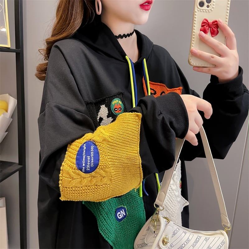 個性的なデザイン オシャレ度満点 長袖 切り替え スウェット パーカー<ins-2218>