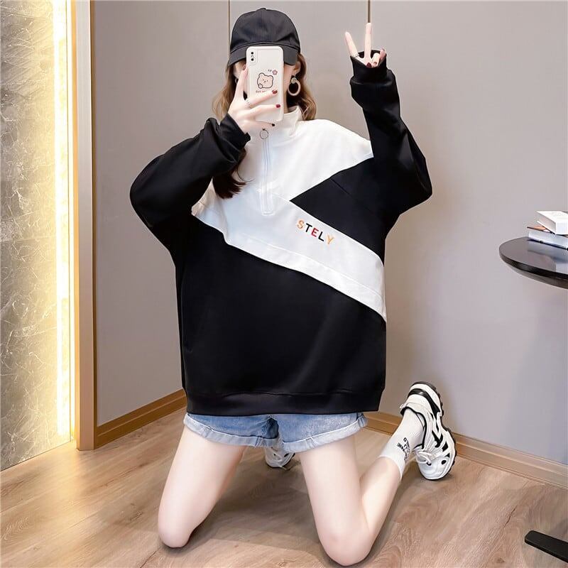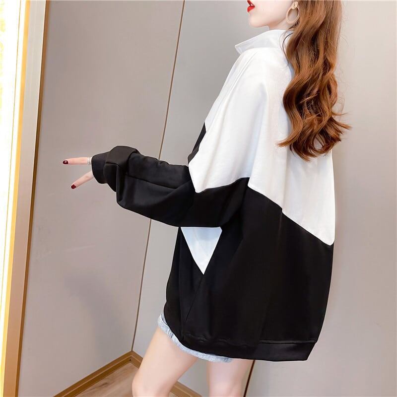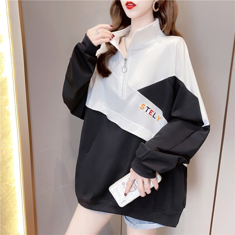 合わせやすい ファッション 切り替え 長袖 スウェット パーカー<ins-2201>