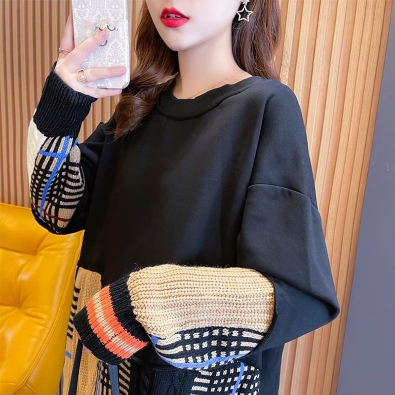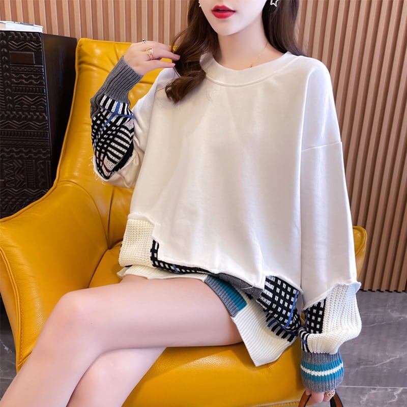ファッション アバンギャルド ラウンドネック 切り替え スウェット パーカー<ins-2198>