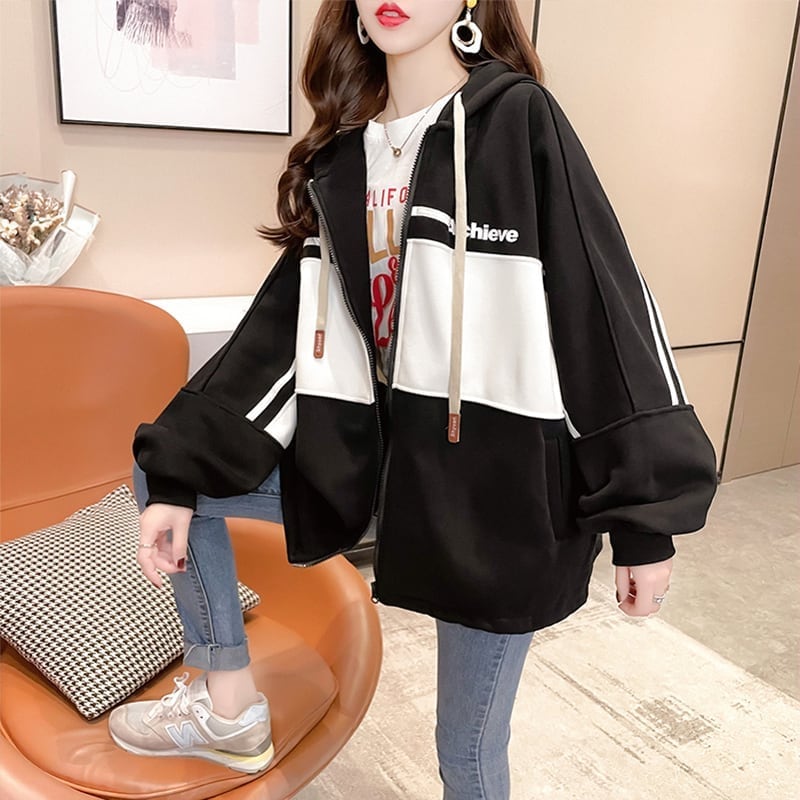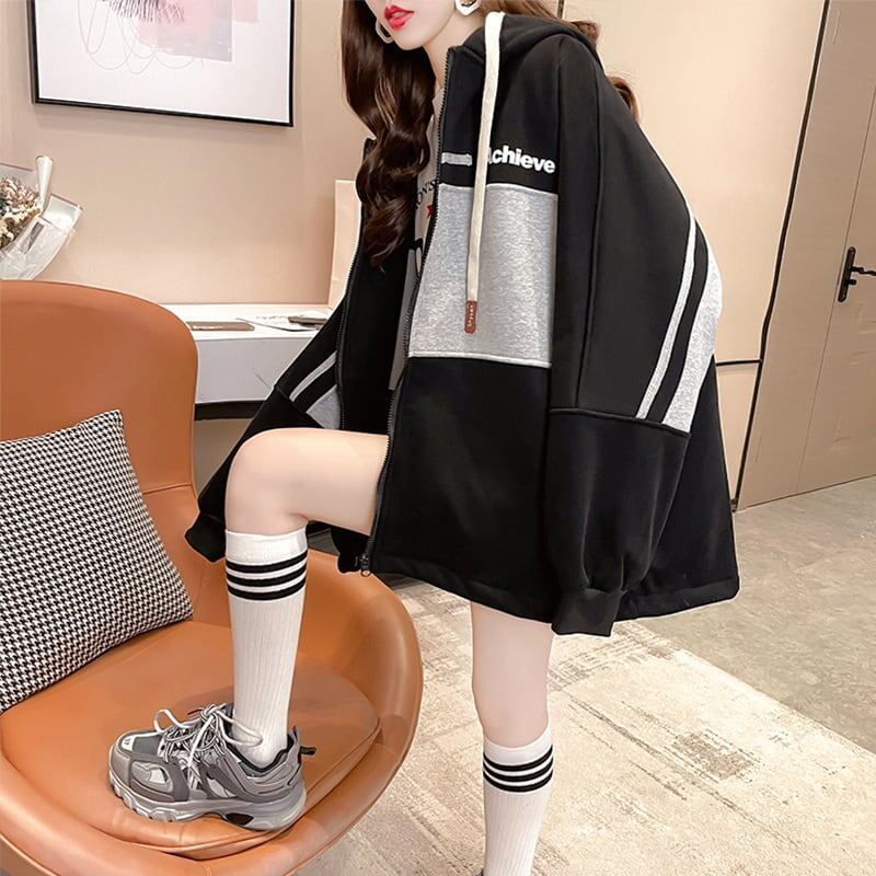 デザイン感 チャーミング アルファベット 長袖 ジッパー スウェット パーカー<ins-2196>