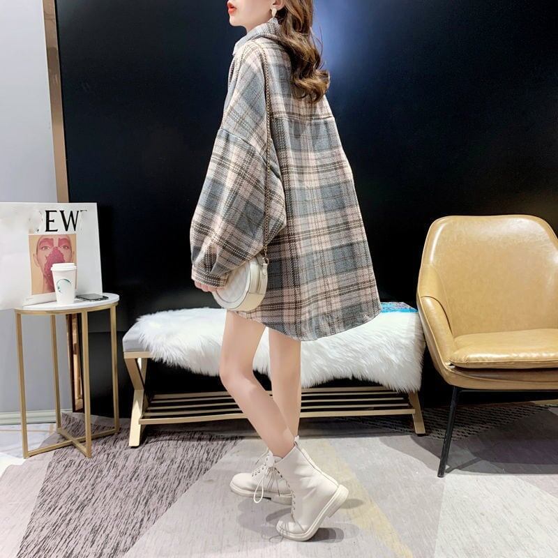 キュート レトロ チェック柄 長袖 シャツ ブラウス トップス<ins-2185>