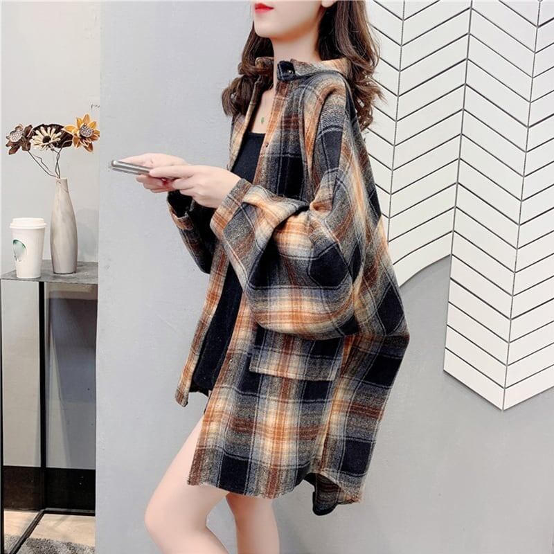 好感度UP 元気いっぱい チェック柄 長袖 シャツ ブラウス トップス<ins-2169>