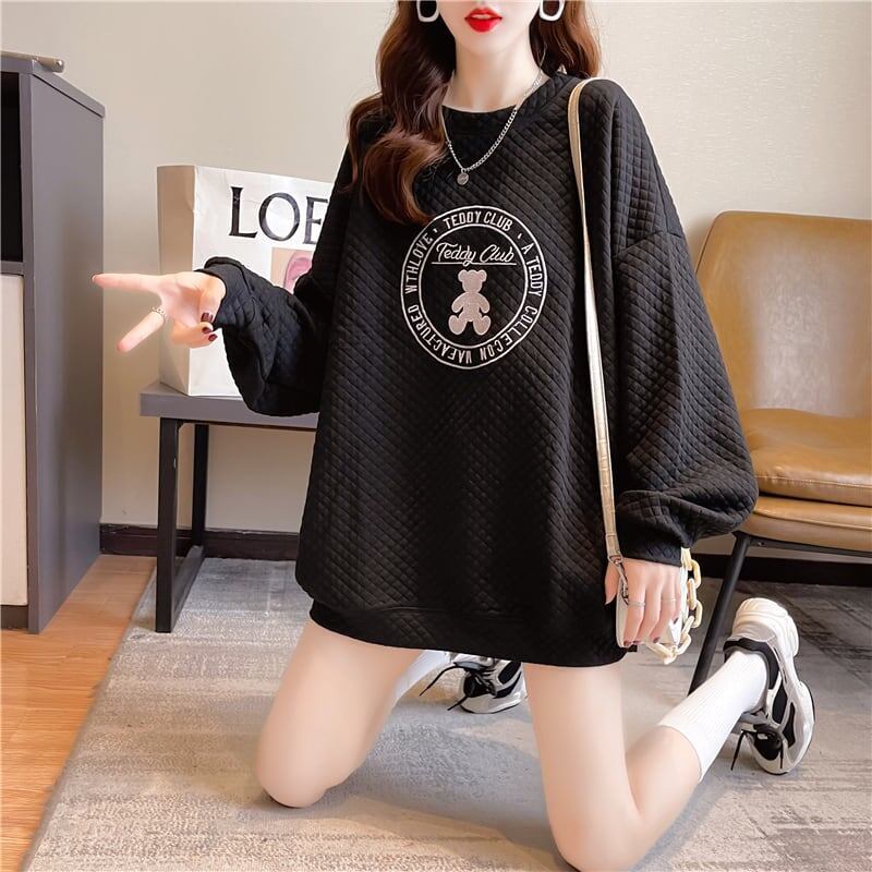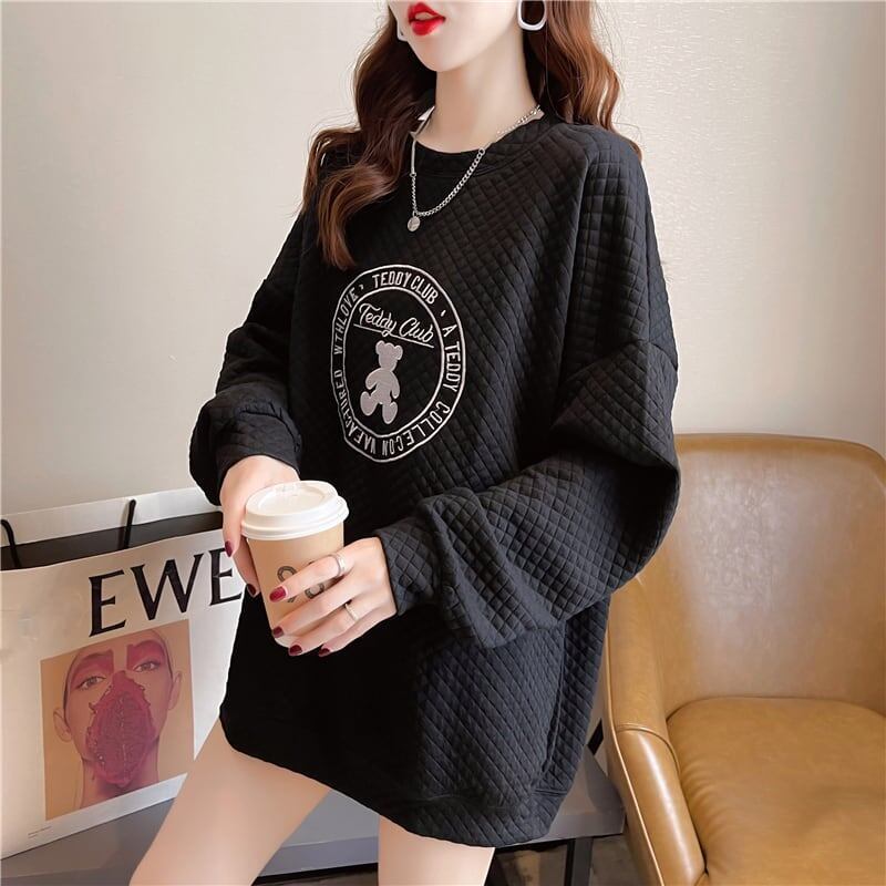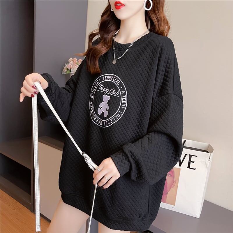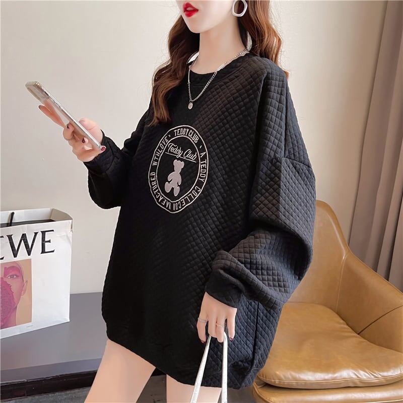 ルーズ 着せ デザイン感 長袖 スウェット パーカー トップス<ins-2159>