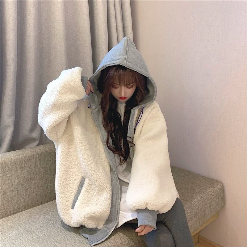 オシャレ度満点 カジュアル 長袖 ジッパー 切り替え スウェット パーカー<ins-2386>