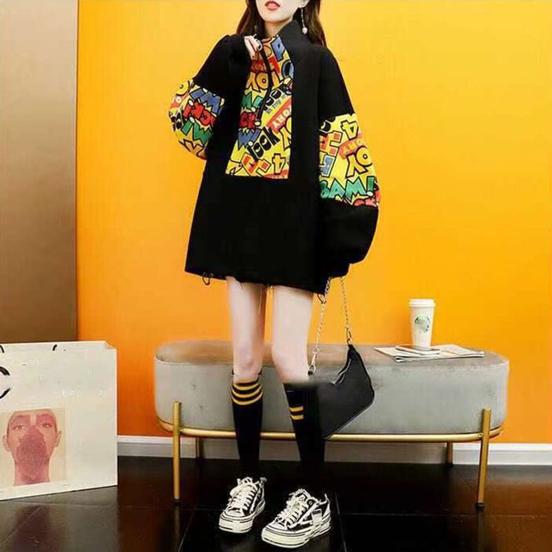 デザイン感 美人度アップ スタンドネック 長袖 スウェット パーカー<ins-2139>