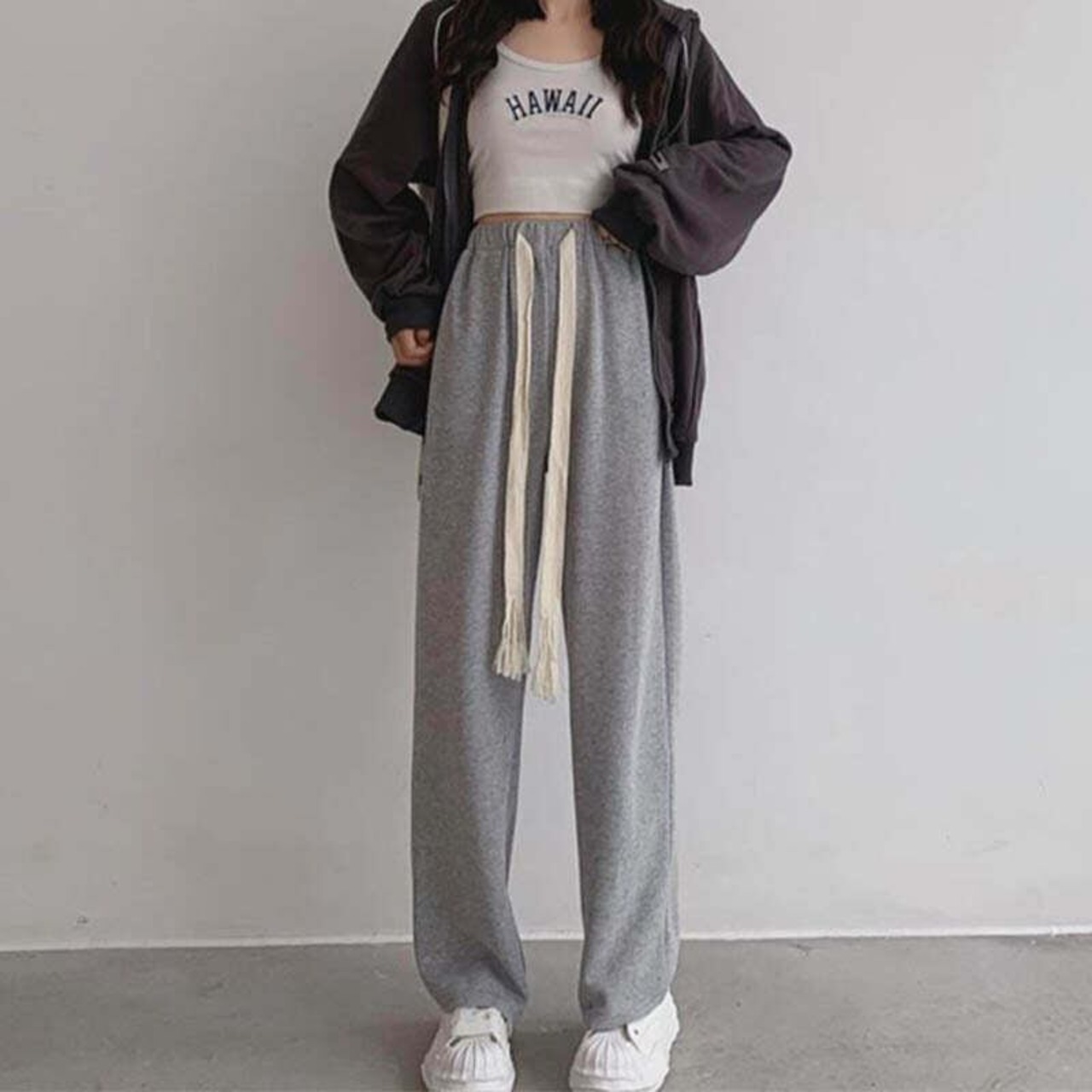 デイリー デザイン感 ハイウエスト 引き紐 パンツ ボトムス<ins-2405>