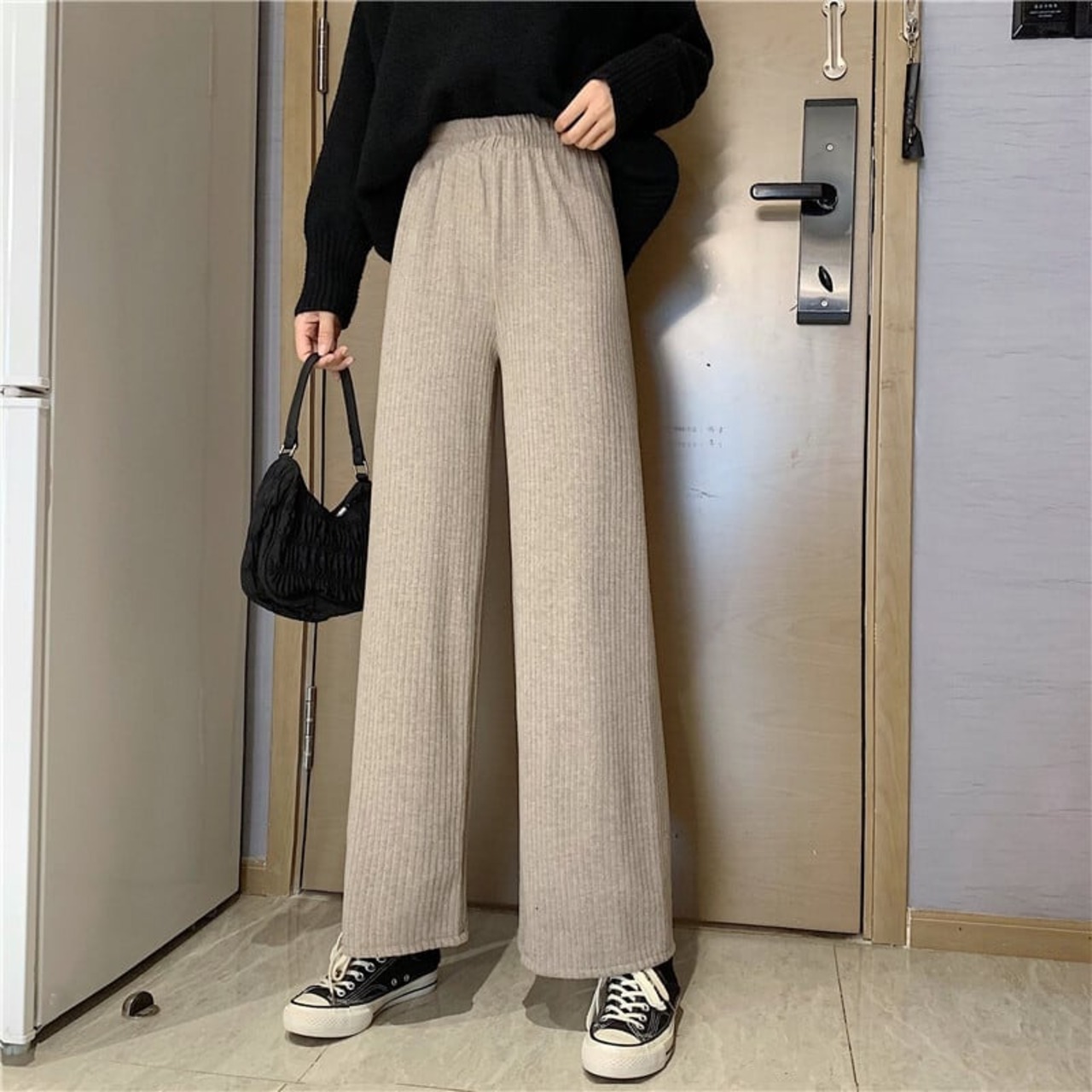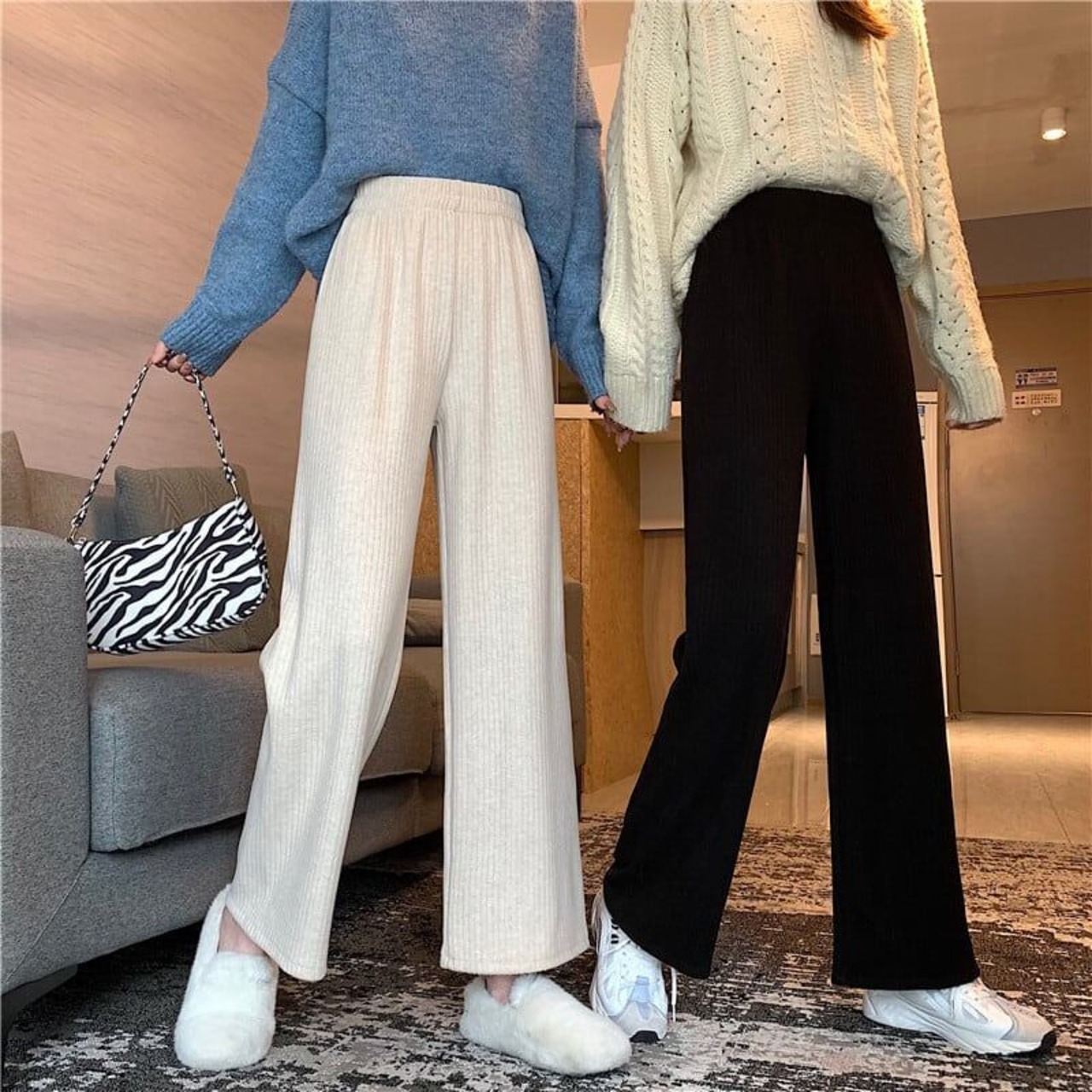 カジュアル ストリート 無地 3色選択可 ハイウエスト ワイドパンツ<ins-2800>