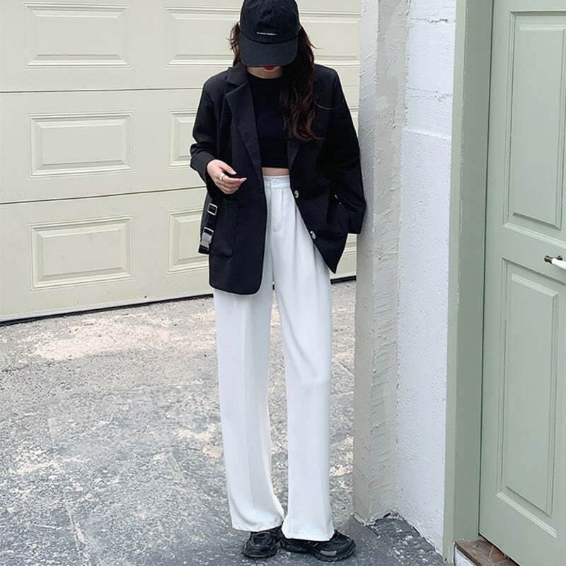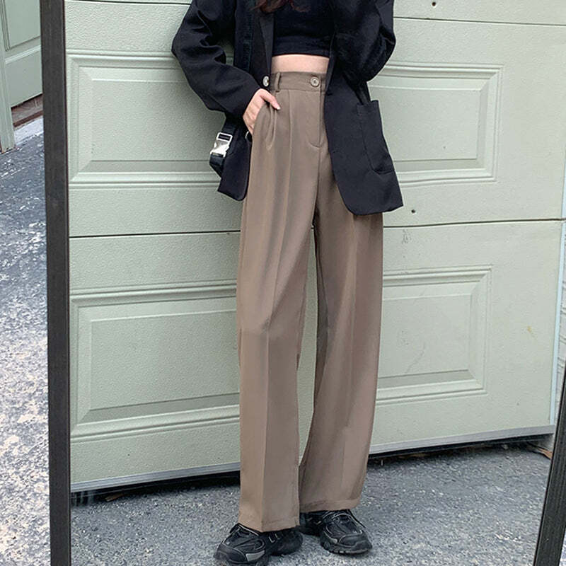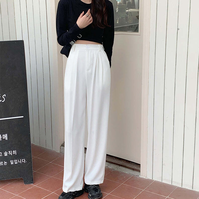 ストリート スタイリッシュ ハイウエスト 無地 ワイドパンツ ボトムス<ins-2778>