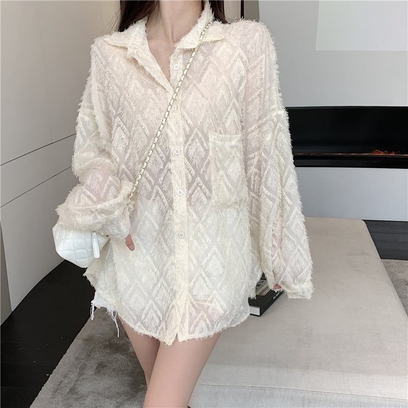 オシャレ度満点 好感度満載 POLOネック 透かし彫り シャツ ブラウス トップス<ins-2776>