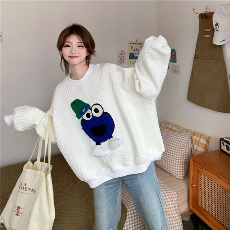 美感いっぱい 着心地抜群 カートゥーンプリント 切り替え スウェット パーカー<ins-2774>
