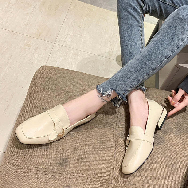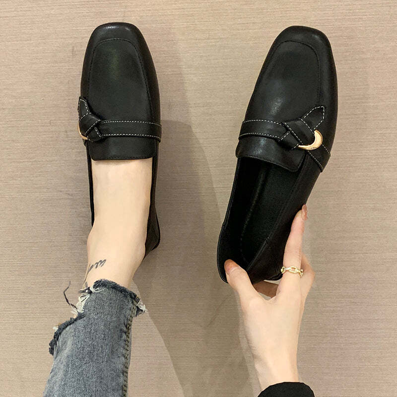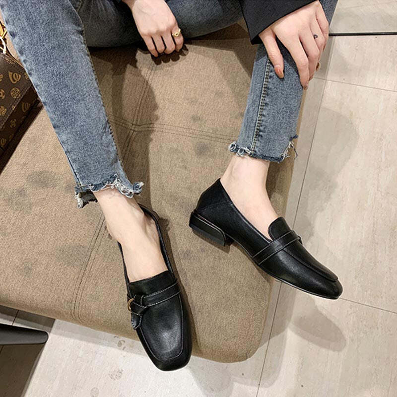 好感度満載 美感いっぱい 太ヒール スクエアトゥ 革靴 シューズ<ins-2771>