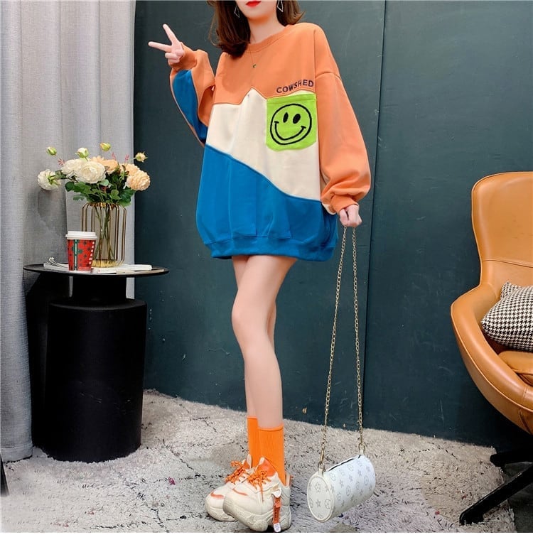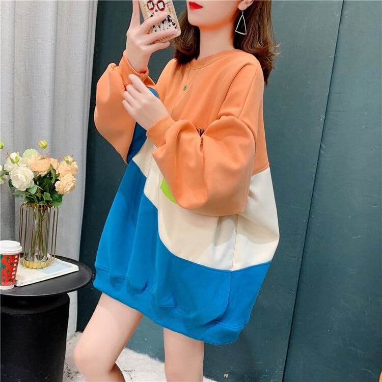 カジュアル ファッション ラウンドネック カラーマッチング スウェット パーカー<ins-2705>