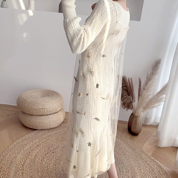 清純甘くて女子力UP 細身効果抜群 キャミソール+ニットワンピース セットアップ<ins-2521>