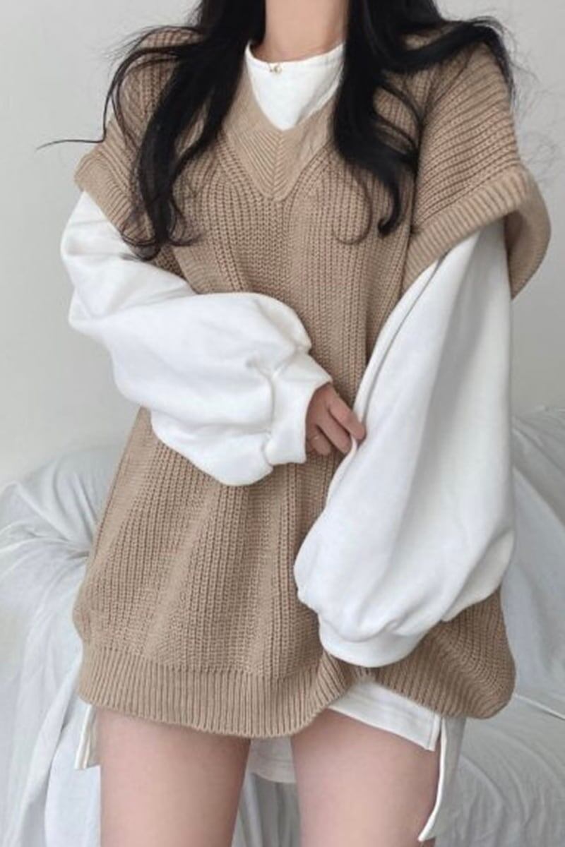 カジュアル ファッション Vネック 無地 3色選択可 ニット ベスト/スウェット<ins-2419>