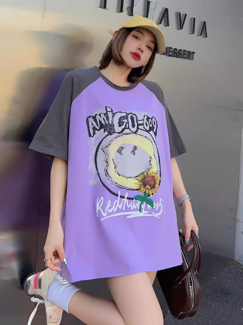 おすすめ 個性派 アルファベット プリントTシャツ ゆったり半袖<ins-8114>