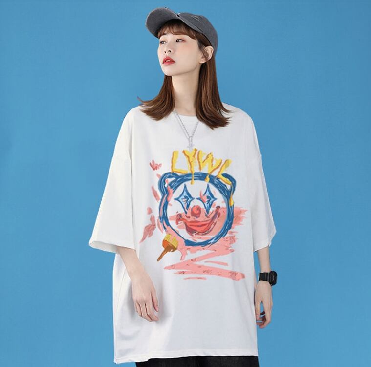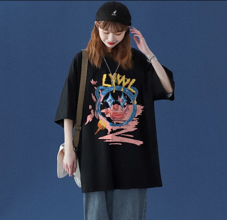 話題沸騰中 カジュアル ゆったり プリント 2色半袖Tシャツ<ins-8159>
