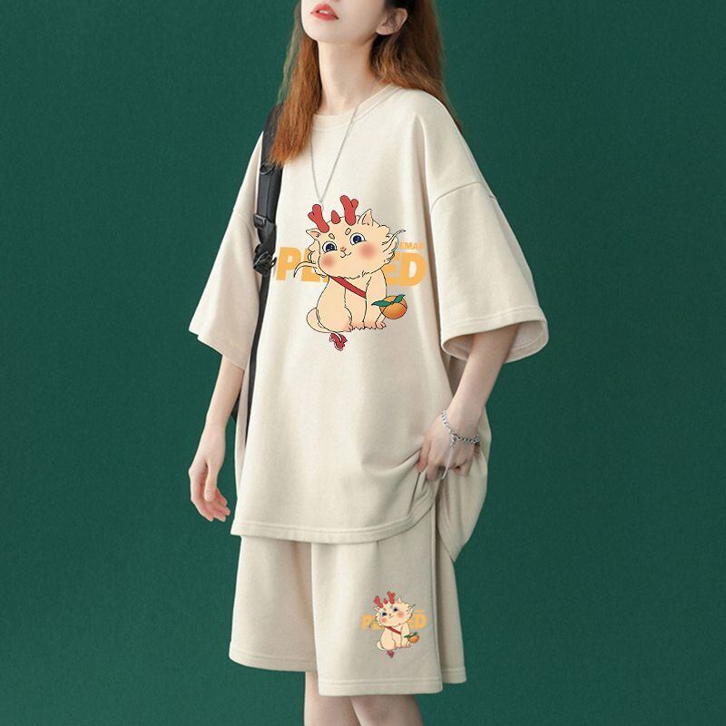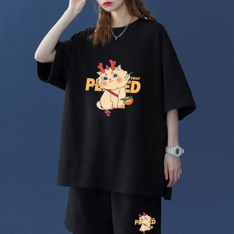 【半額セール】早い者勝ち 男女兼用 半袖Tシャツⅹパンツセット全4色<ins-6548>