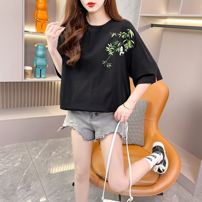 新商品 上質 カジュアル 刺繍 半袖Tシャツ カットソー<ins-8219>