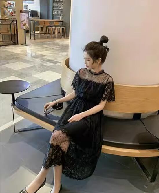 美人度アップ エレガントレース 透かし彫り 切り替え ワンピース<ins-8220>