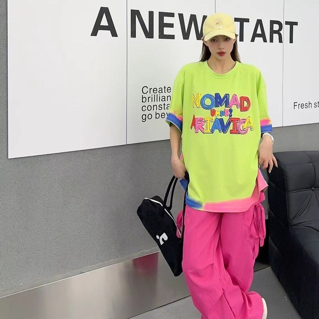 個性的なデザイン 好感度満載 アバンギャルド プリント 半袖Tシャツ カットソー<ins-8237>
