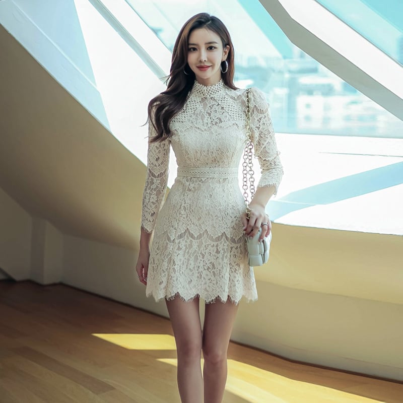 新作 エレガント 知的 上品 レース 透かし彫り ワンピース<ins-8246>