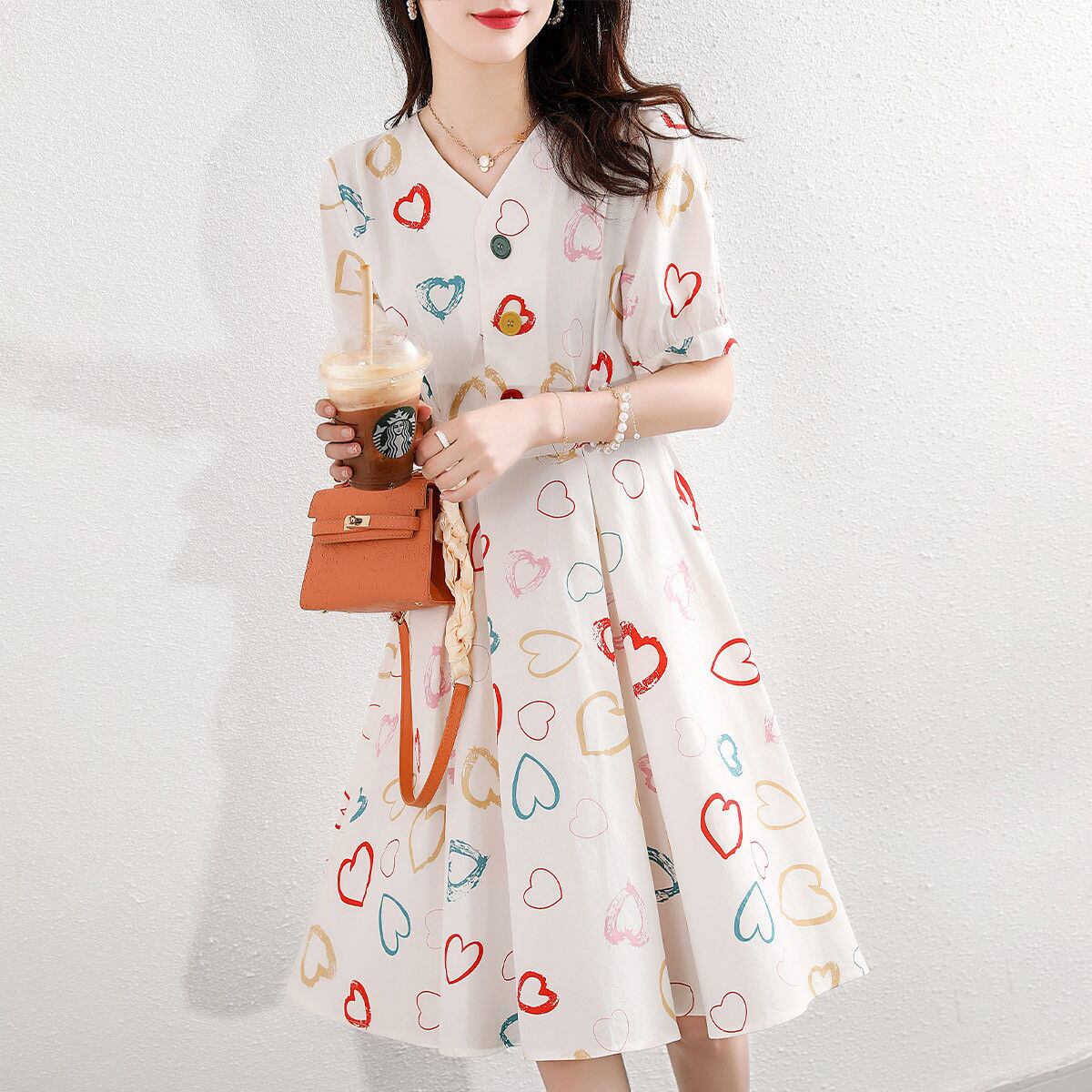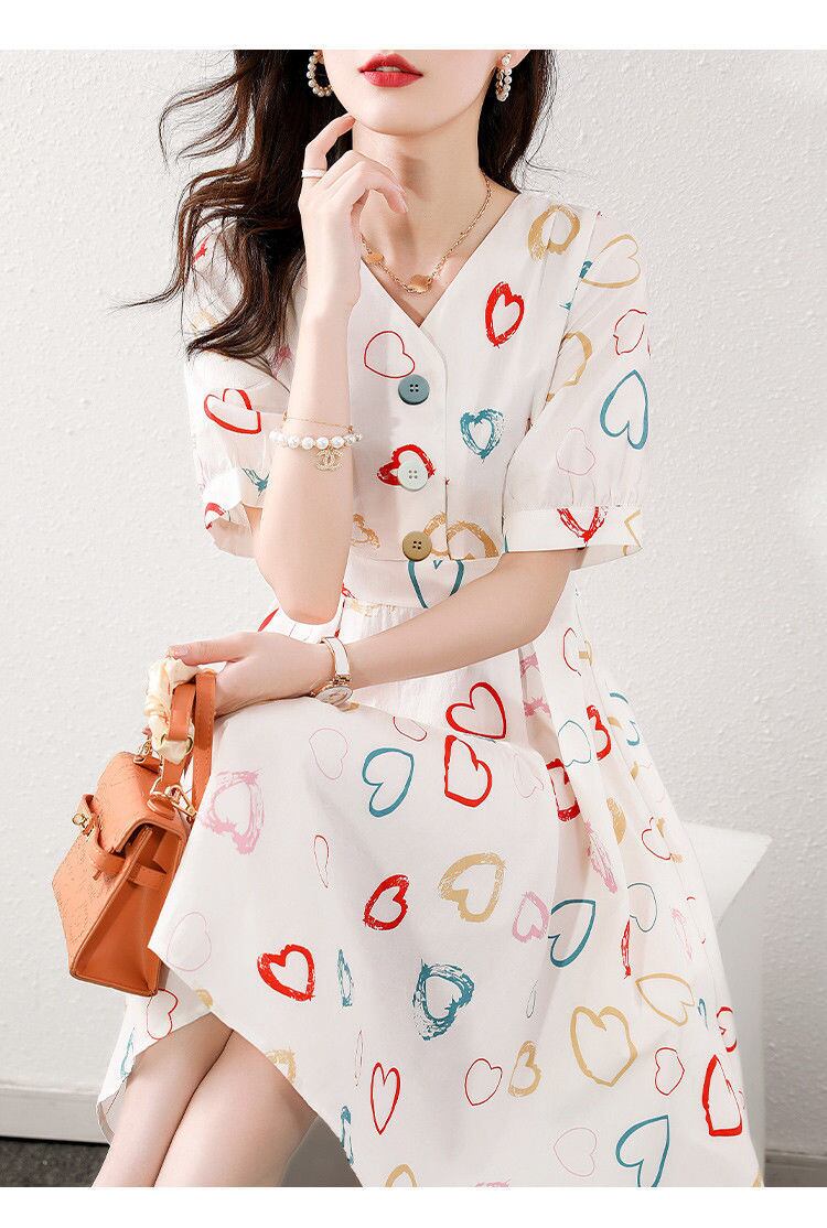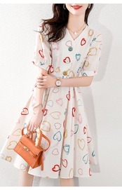 絶対欲しい エレガント知的 花柄 Vネック ワンピース<ins-8258>