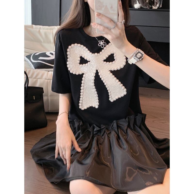 絶対欲しい ファッション リボン 切り替え ワンピース<ins-8294>