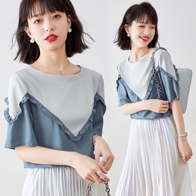 【半額!期間限定!!】 定番シンプル ファッション 上質 シフォン 半袖<ins-6595>