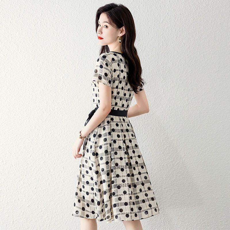 着回し力抜群 カジュアル エレガント ドット柄 ワンピース<ins-8324>