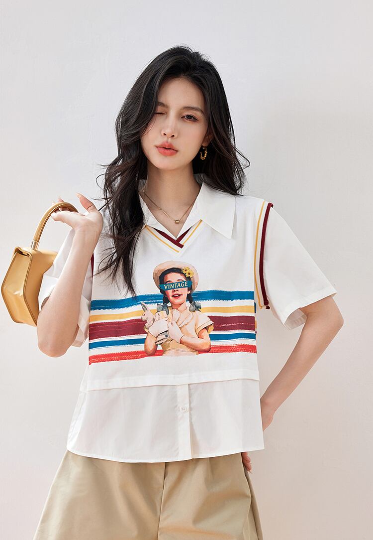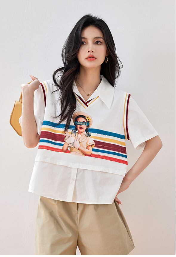 話題沸騰中 個性的なデザイン 一目惚れ レイヤード風 Tシャツ カットソー<ins-8331>